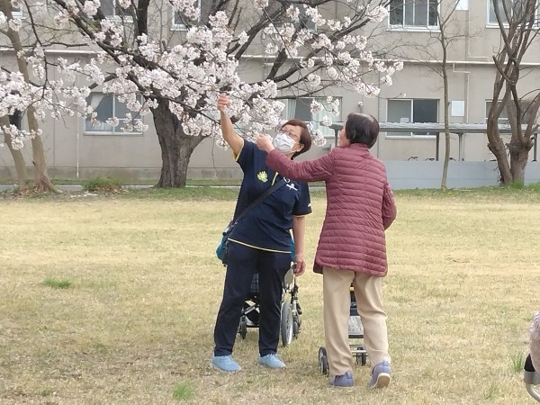 「きれいね」「ちょうど良い日に見に来れたね」と春を感じていらっしゃいました。