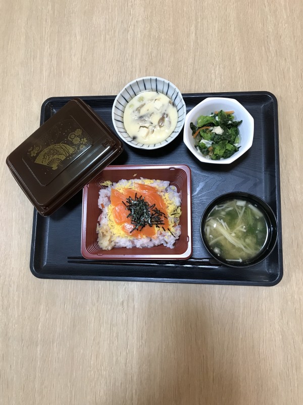 小鉢には菜の花と湯葉の煮浸し、茶碗蒸しもついて(*^^*)