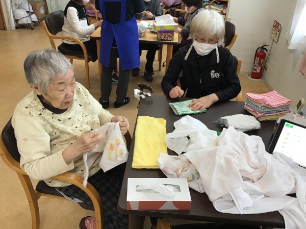 作品作りをするだけではなく、生活リハビリの一環として洗濯物たたみを行っていただくこともあります。