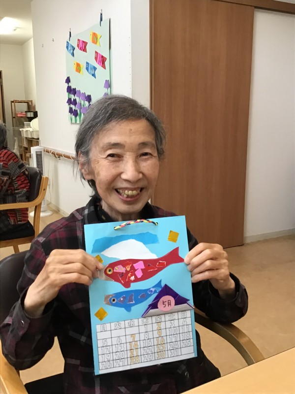 デイサービスかたくりの里中田南 では毎月カレンダーを皆さんに作っていただいています。