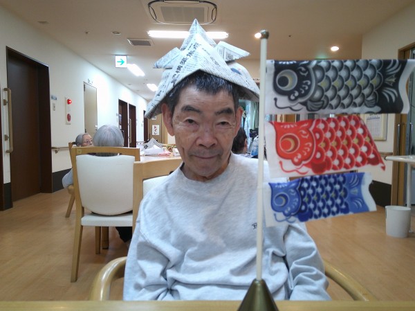 と、職員が兜を折ってきてくれたので、皆様にかぶっていただきました(*^^*)