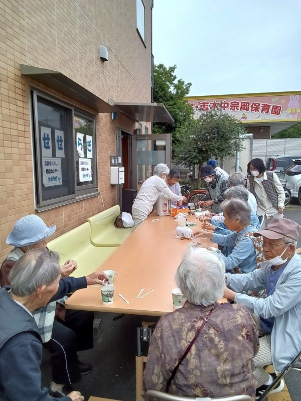 「外で飲むコーヒーは格別だね」や「夫がDSに行っているのでつかの間の休息」とゆっくりした雰囲気で皆さま同志交流をとっておりました。
