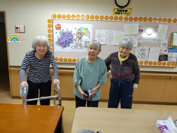 アジサイの絵に印刷した花びらを張り付けていただきました。