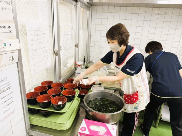 お赤飯は佐賀さんヒヨクモチという美味しいもち米に極上の岡山産だるまささげ加えて炊き上げました。また、今回からお味噌汁もご用意しました。昆布は日髙昆布特等浜非寒台産と枕崎からの鰹節と合わせて出汁をとり、味噌は仕込み味噌を使いました。まずはご賞味あれ。