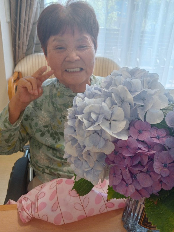 アミカの郷川口のお庭にアジサイがたくさん咲きました。