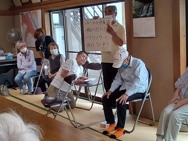 内容は、理学療法士佐々木さんによる体操や頭を使った手指の運動を実施頂き、合間では水分休憩を取りながら、「新しい認知症観」についてのお話を