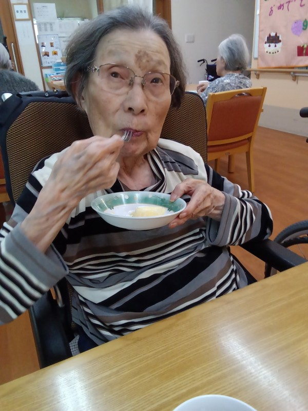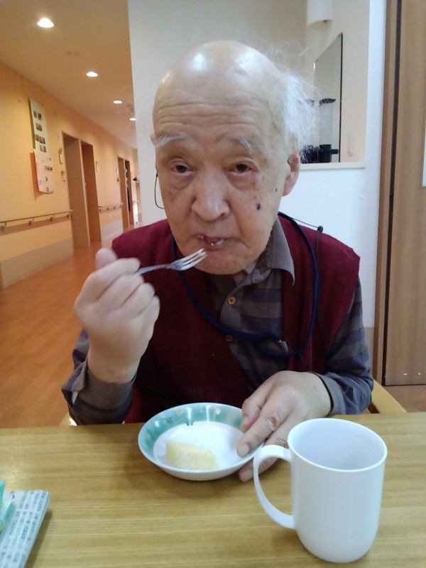 おやつの時間に合わせてホールに集まり皆さんで「ハッピーバースデー」を歌い