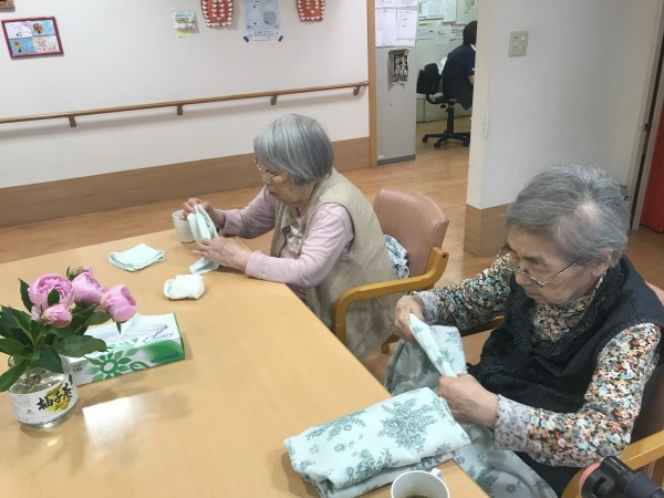 日課の洗濯物たたみや、爪切りに集中されている皆様です…!そっと撮らせて頂きました!