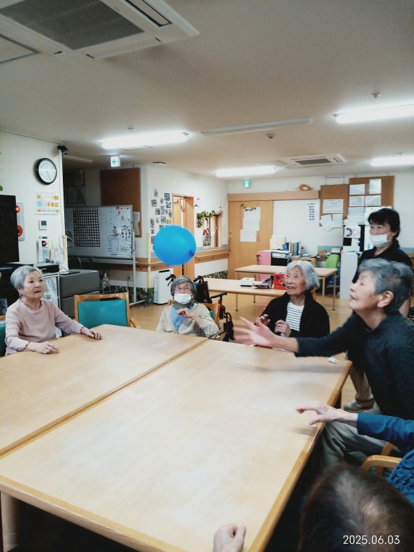 今日は普段のレクの様子を紹介したいと思います。本日は風船バレーをしました。