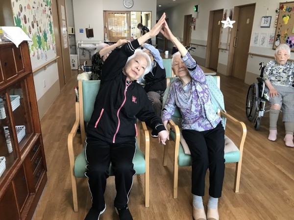 こんにちは! グループホームみんなの家・川崎野川南台です! 今回のリモート体操は「ペアヨガ」 椅子をいつもより少し近づけて、隣の方と手を合わせたり、 温もりを感じて「ほっこり笑顔」が撮れました(^^♪