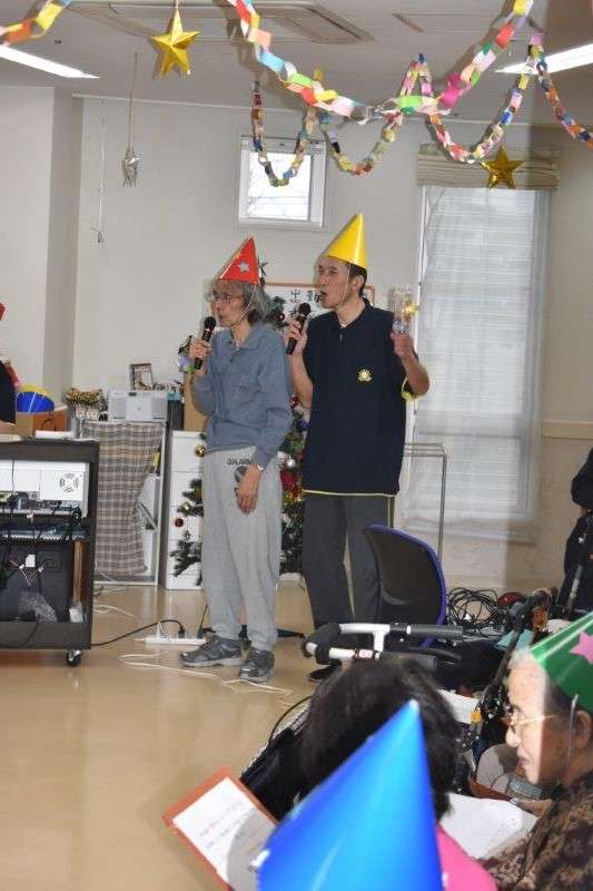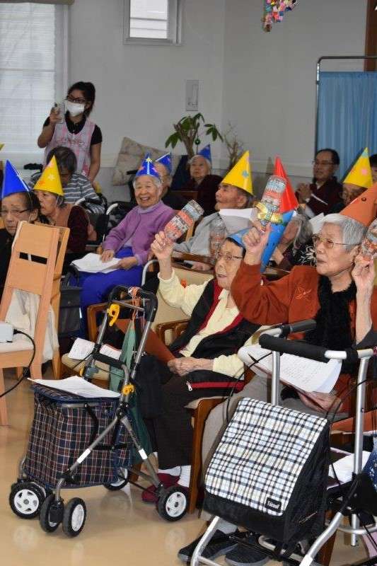 3階の皆さまは歌に合わせて手製のマラカスで演奏をしてくださいました。