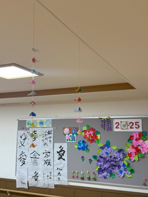 ご利用者様も職員も多くの時間を過ごすこのフロアに金魚がゆらゆらしているのです!