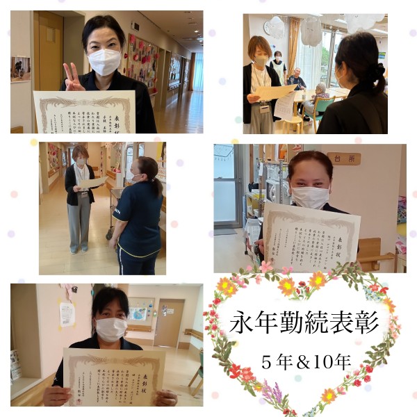 この度「みんなの家・川越寺尾」では、勤続5年の手銭ケアマネージャーと堀職員、そして10年の樋口職員の永年勤続表彰式を行いました!