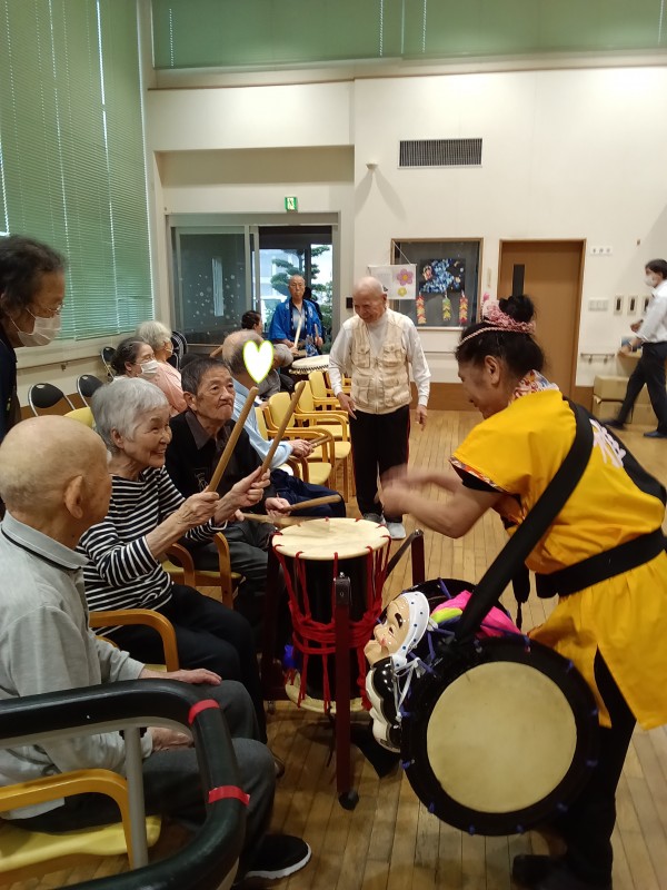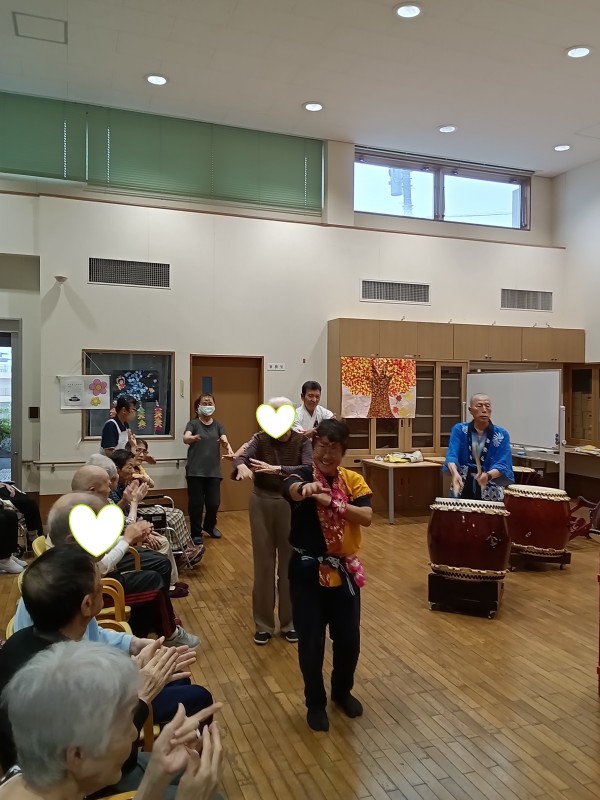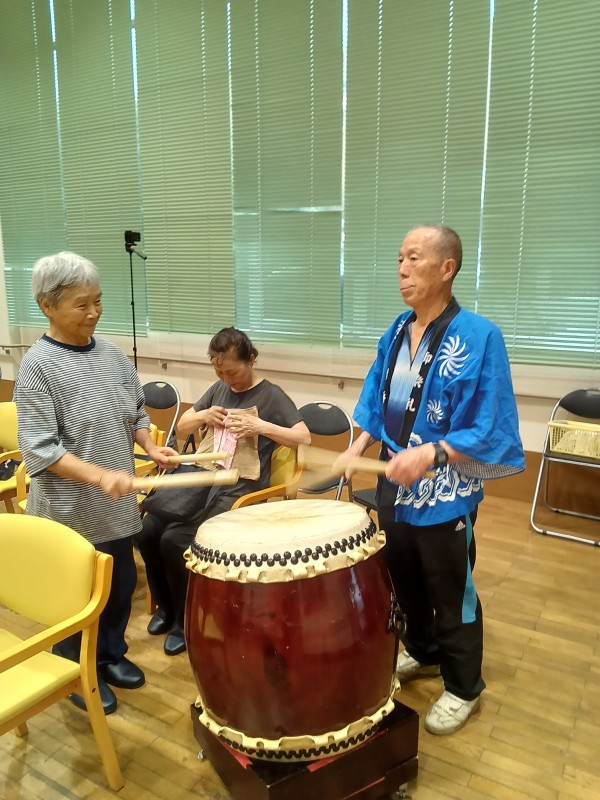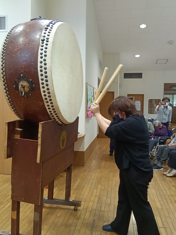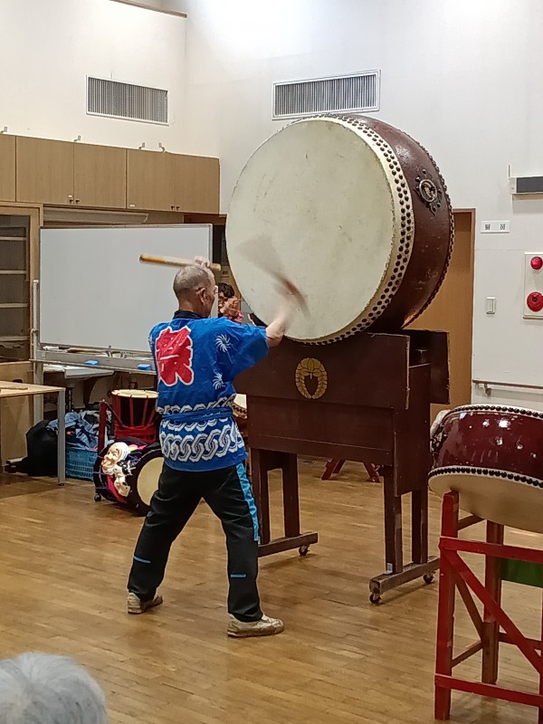 天候が悪い中地域の方々も参加頂き、それぞれに太鼓を叩いていただいたり