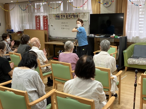 こんにちは!かたくりの里みずほ台です。毎日暑く、動くのも億劫になってしまう季節ですが、そんな中かたくりの里では、涼しい室内で、元気いっぱいに汗を流しています!