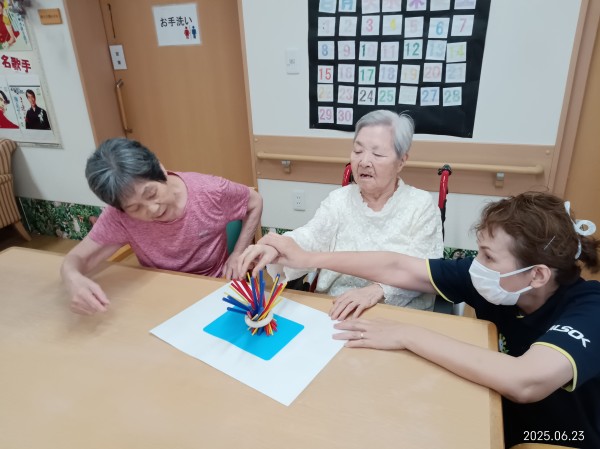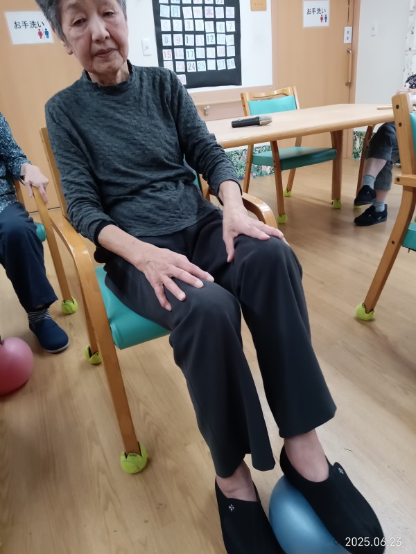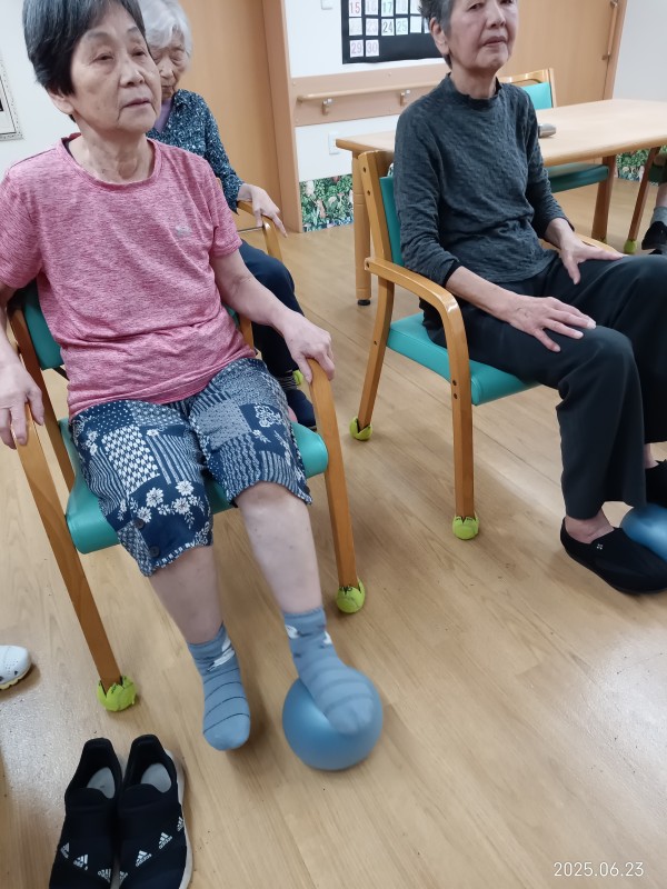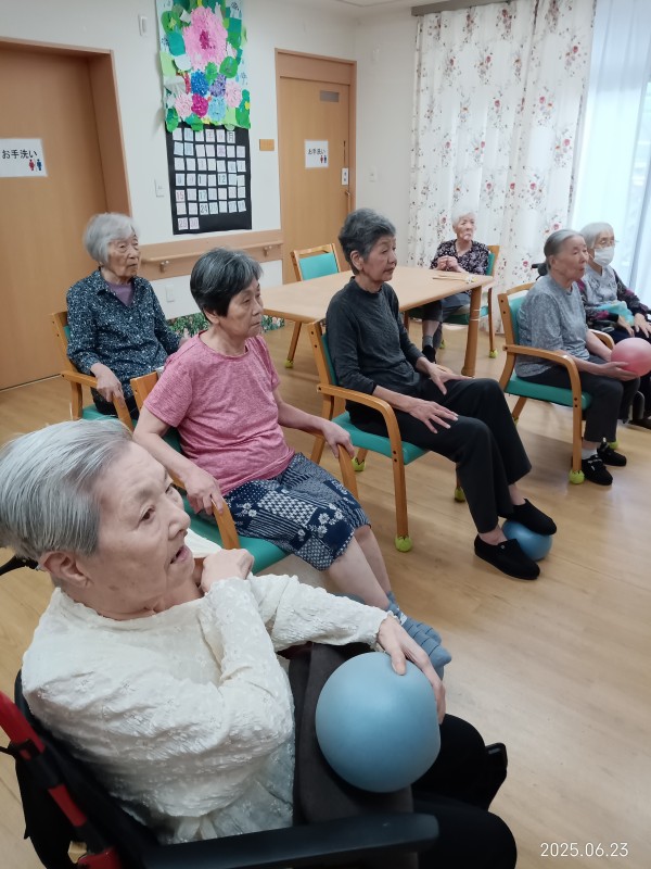 今日のレクリエーションはボール体操とバランスゲームです~