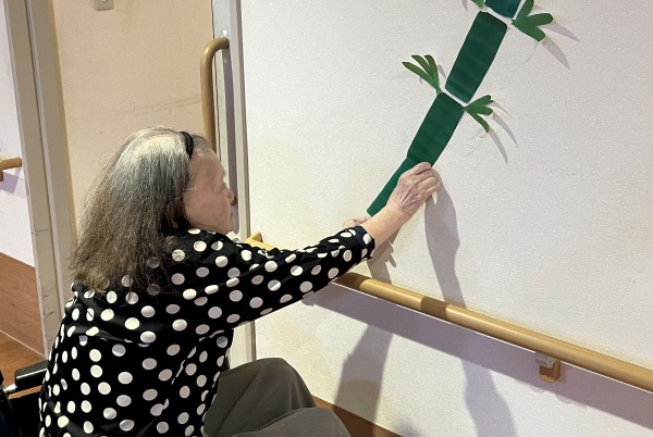 利用者様と一緒に七夕の飾り付けを
