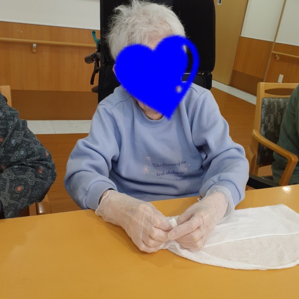 “おしぼり作り”を 利用者様に手伝って