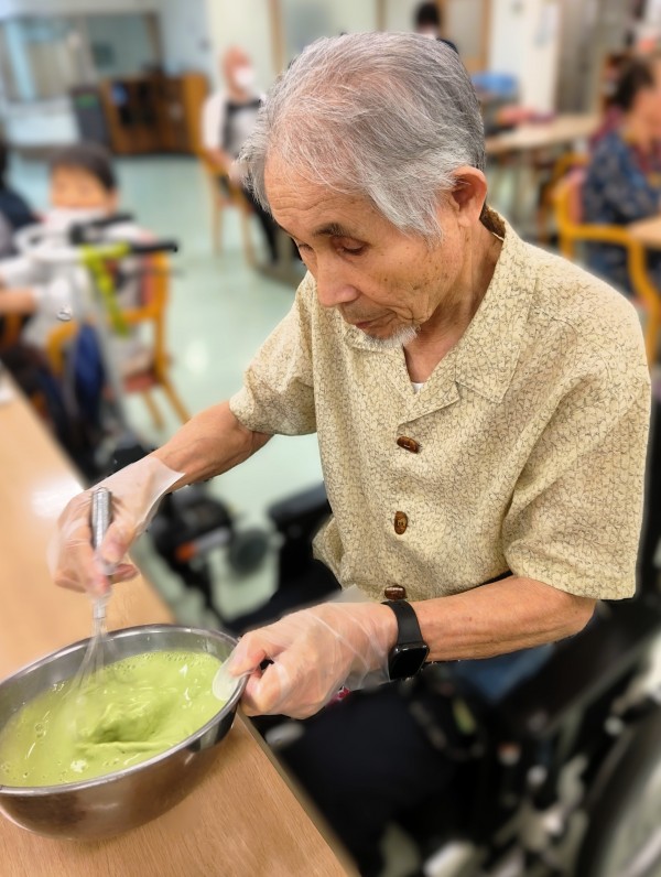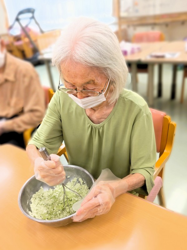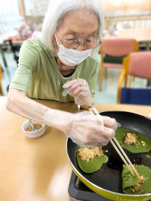 プレーン生地には粉末の黒糖のみ、抹茶入り生地には黒糖ときな粉を入れて作っていただきました♪