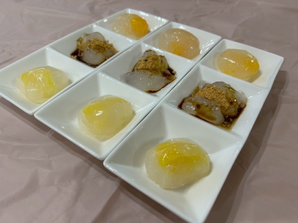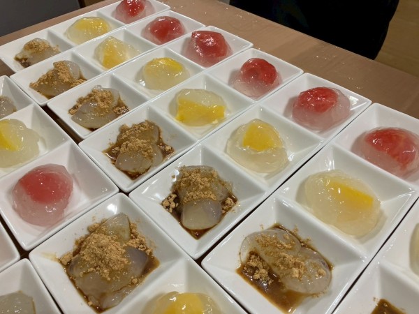 水まんじゅうと言うと葛粉を使用するのが通常なのですが、今回はわらび餅粉を使用して水まんじゅうを作り、余った生地を使って【わらび餅】も一緒に作りました!