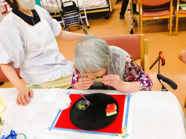 美味しく召し上がり、皆様に英気を養っていただきました♪「どれも美味しかったけど、スイカが特に美味しかったね!」とお話されるご利用者様もいらっしゃいました。やはり今の時期は冷たいものが一番ですよねー