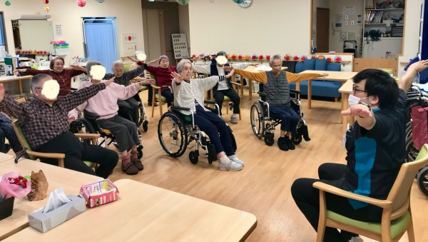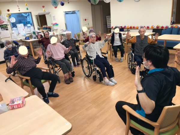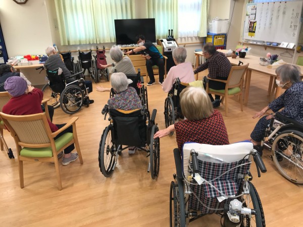 午後に食堂スペースに集まっていただきリハビリスタート!!٩(๑❛ᴗ❛๑)۶