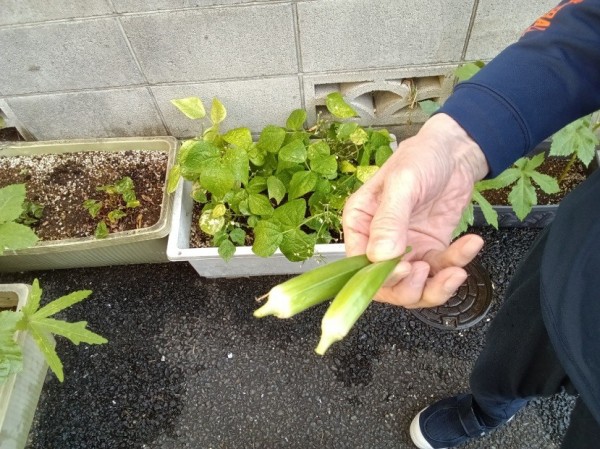 グループホームみんなの家・中野鷺宮でご利用者様と朝一に夏野菜の収穫してお昼に各階で分けて一品追加でお出ししました。