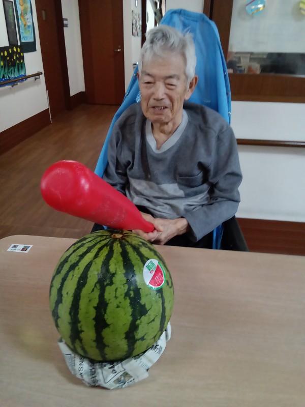 今回は1階のご利用者様のスイカ割りのご様子をお届けいたします!