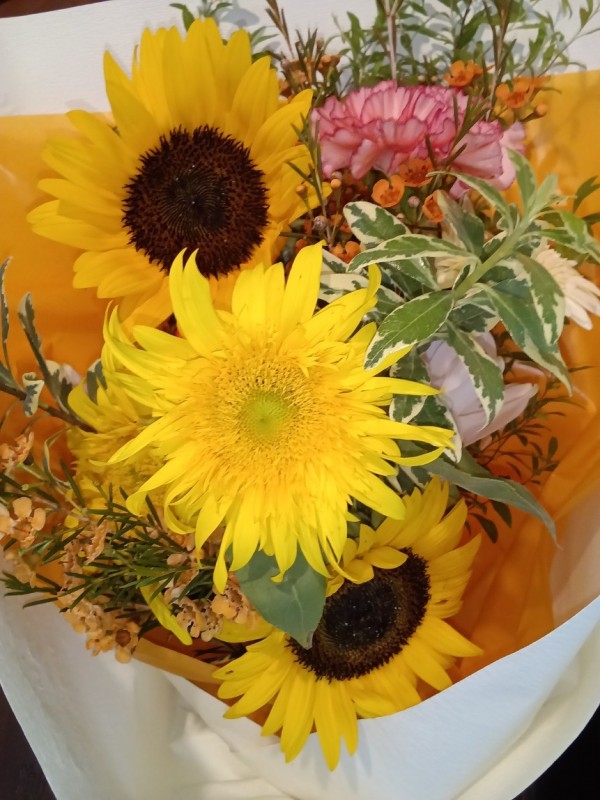 「百寿」の方へご家族よりメッセージカードが添えられた花束をプレゼント。