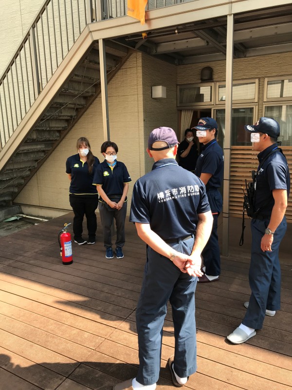 訓練を実施しました‼消防隊の方からは1階の避難誘導が終わり