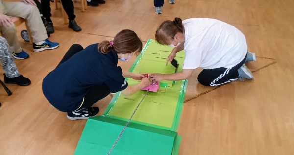 一生懸命、必死にお手玉拾う職員ヾ(≧▽≦*)o