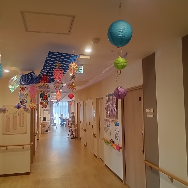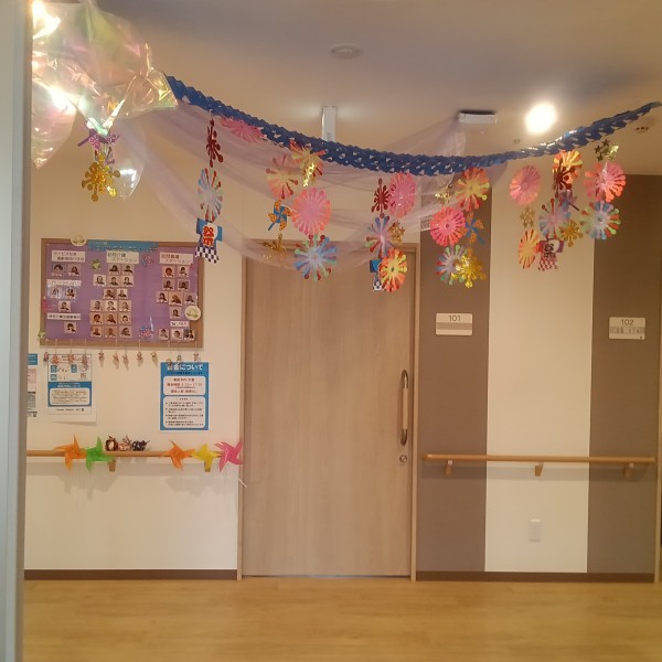 通るたびに「わ~!きれいね。花火だ!たまや~」という利用者様もいて、職員も一緒に楽しんでいます。