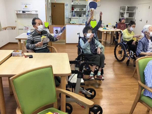 オンラインで当社の他のホームの方々と繋がち、一緒に体操を行います。