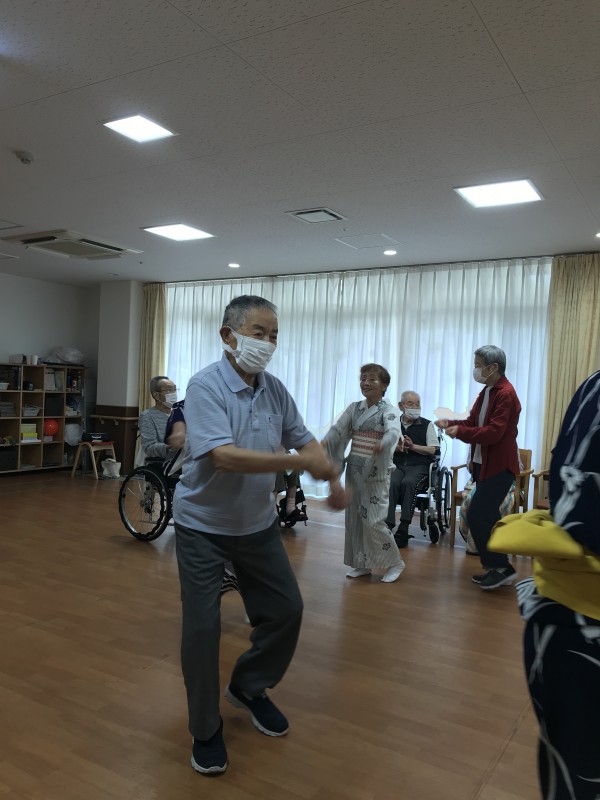 先日、ボランティアで盆踊りを披露しに来てくれました。