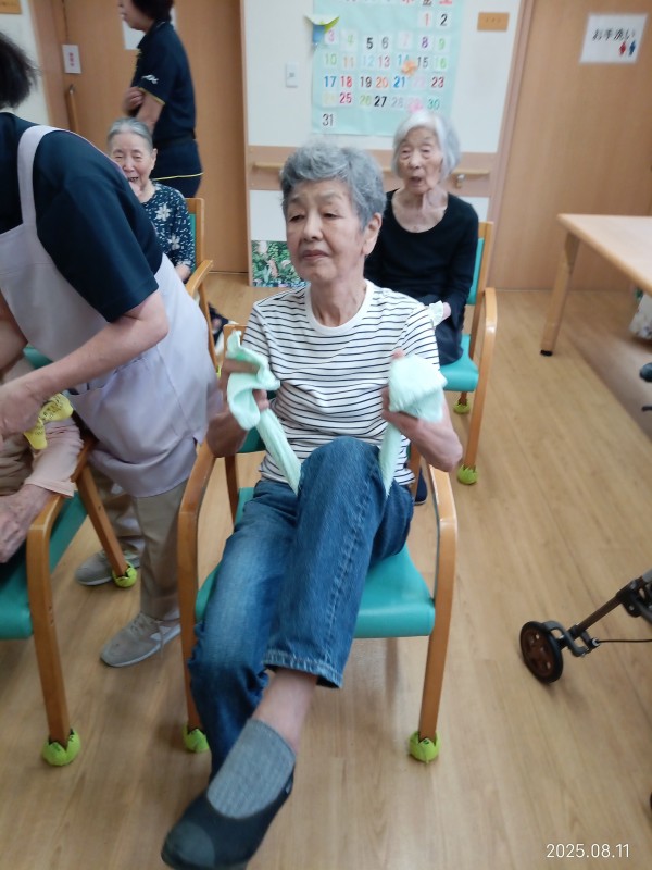 さて、今日は皆さんボール体操とタオル体操をしましたよ~。
