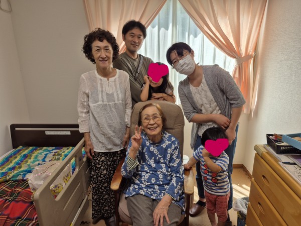 娘様、お孫様ご夫婦、曾孫様と笑顔で談笑されていた〇〇様。