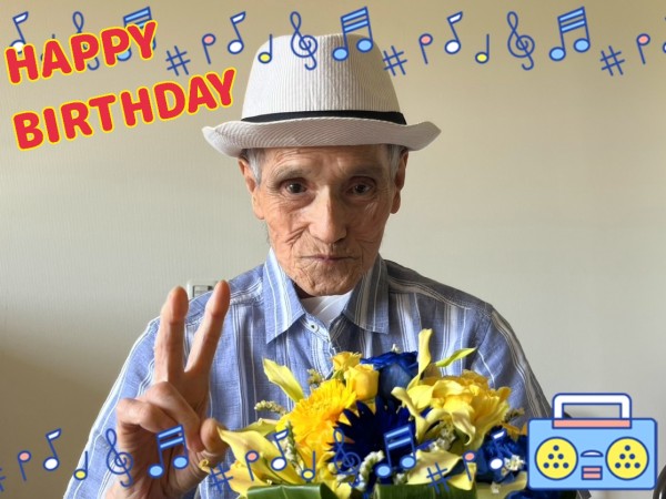 誕生日に、一言お言葉を頂戴します。じっと見守る職員たち。しっかりとした字で「ありがとう。来年は90歳です。」