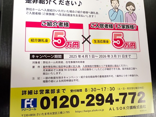 ご紹介者様×ご入居者様ご家族様5万円×5万円‼2025年令和7年✨