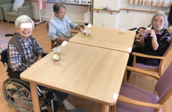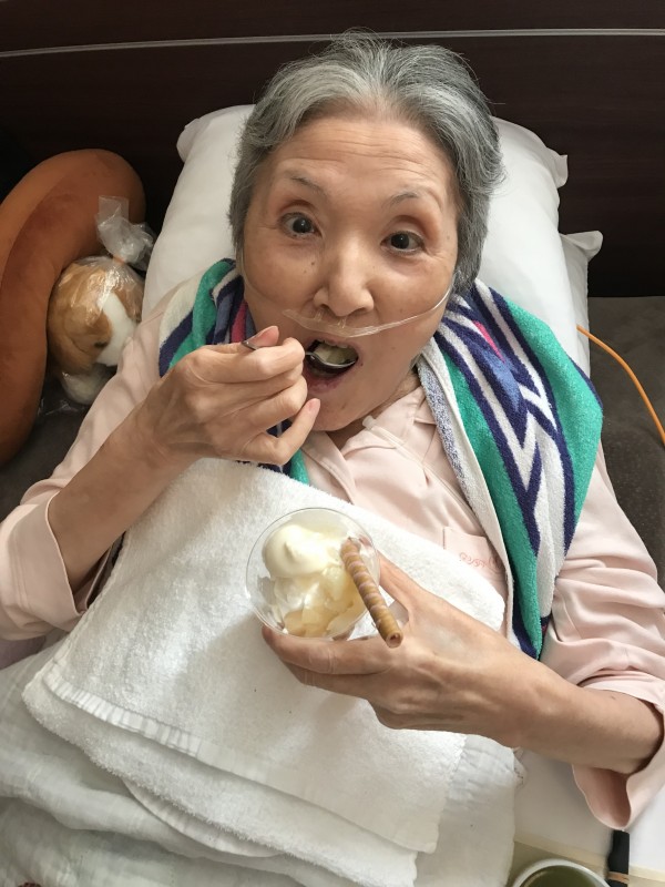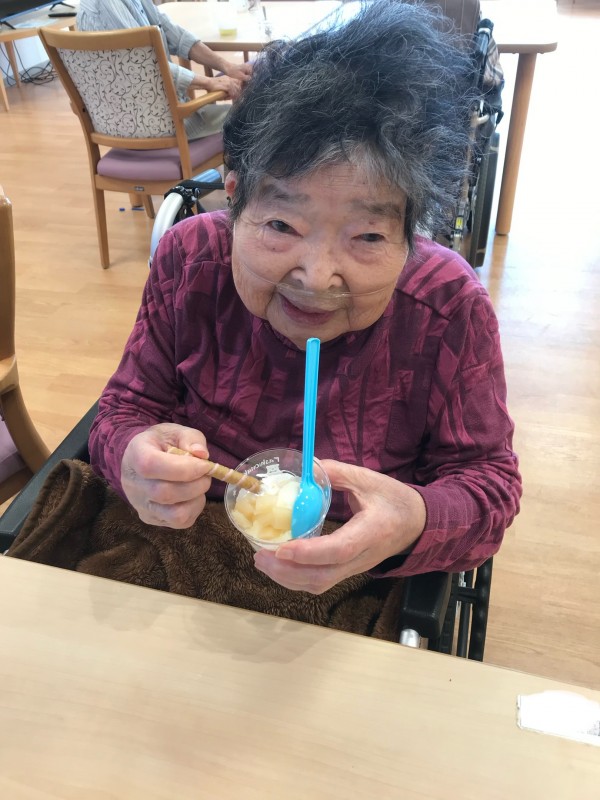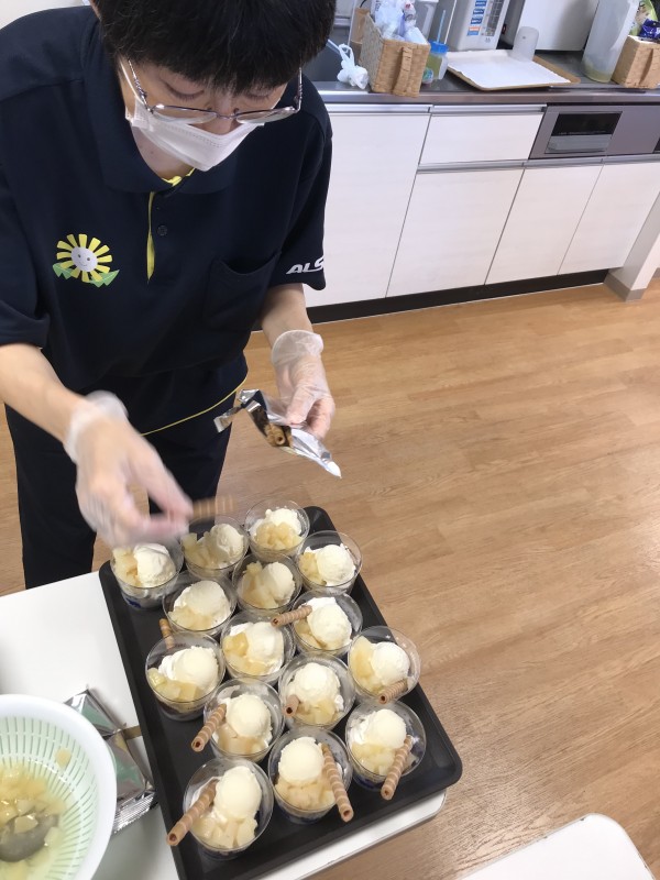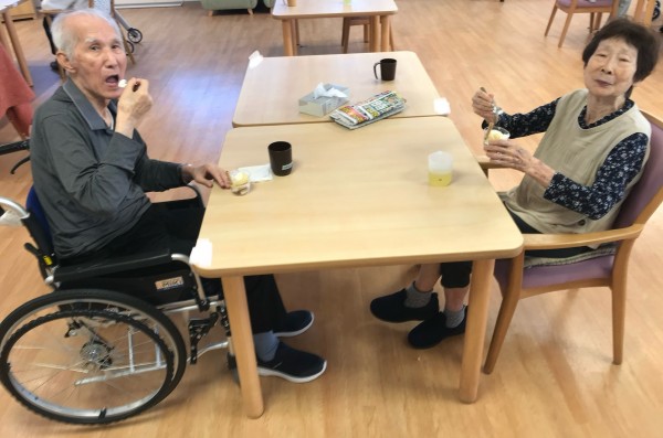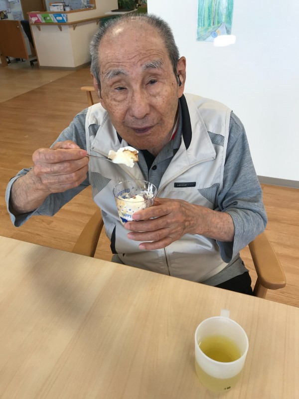 ヒマワリも咲いたのでおやつも暑さ吹き飛ばす為「アイス」を提供してみました♪