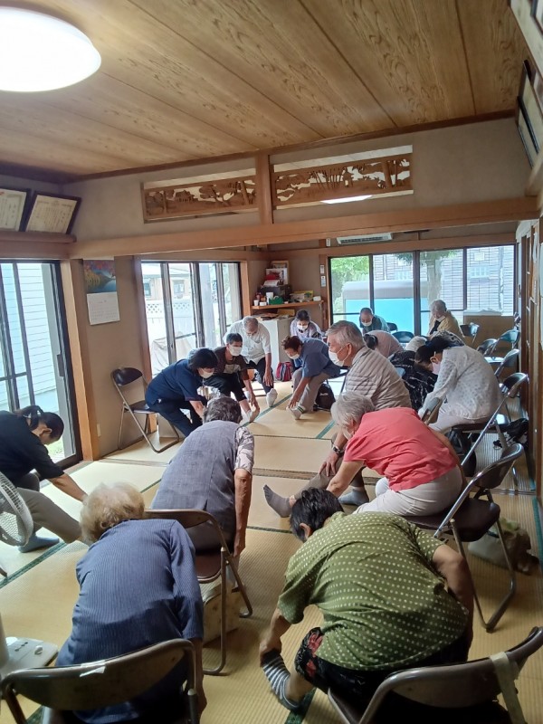 休憩の合間に「フレイルと防災についてのお話」を頂きました。普段は転倒予防、非常時は自分の身を守ることができる、日頃から体を鍛えることで、災害の