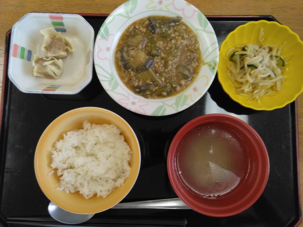 サムゲタンスープ、麻婆茄子、焼売、もやしのナムル