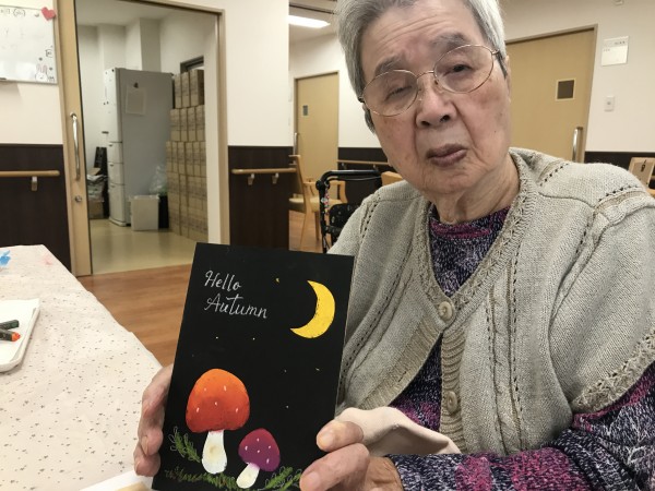 今回は秋らしく(まだ暑いですが...)きのこ、お月さまを描いてもらっています。