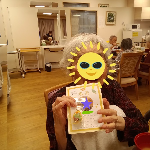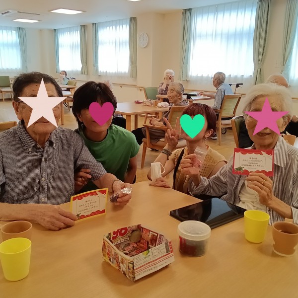 敬老の日のカードとプレゼントをお配りして ご家族の方が見えていたのでご一緒に。