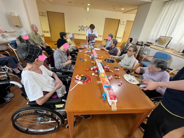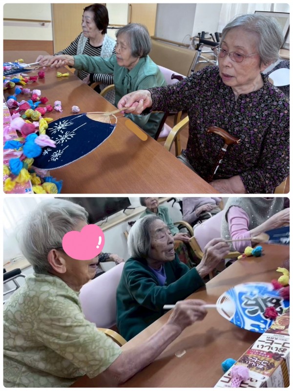 ご入居者様に作ってもらったカラフルな金魚ちゃん達を使います