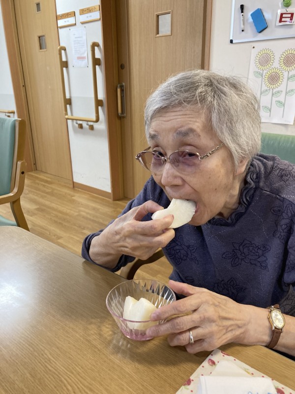 今日のおやつは秋の果物の梨を召し上がって頂きました。