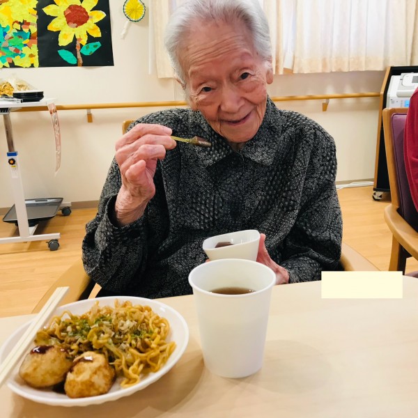 今年の敬老会では、たこ焼き、焼きそば、チョコバナナ、水ようかん、ぶどうゼリーをご用意しました♡
