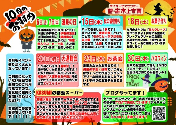 10月もイベント盛りだくさんですよ!お楽しみに!
