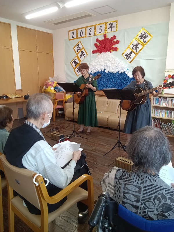 本日はギターのボランティアの方が来てくださり、フォークソングなどの曲を沢山演奏してくださいました。