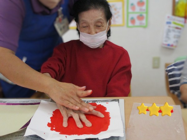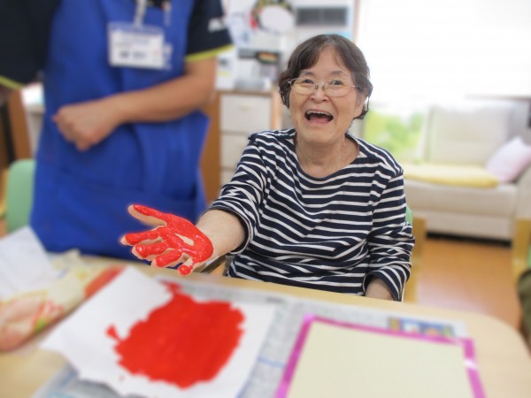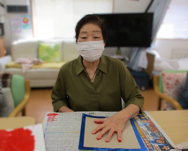 絵具を手に塗るときは、「うわーー!」と叫び声(笑)