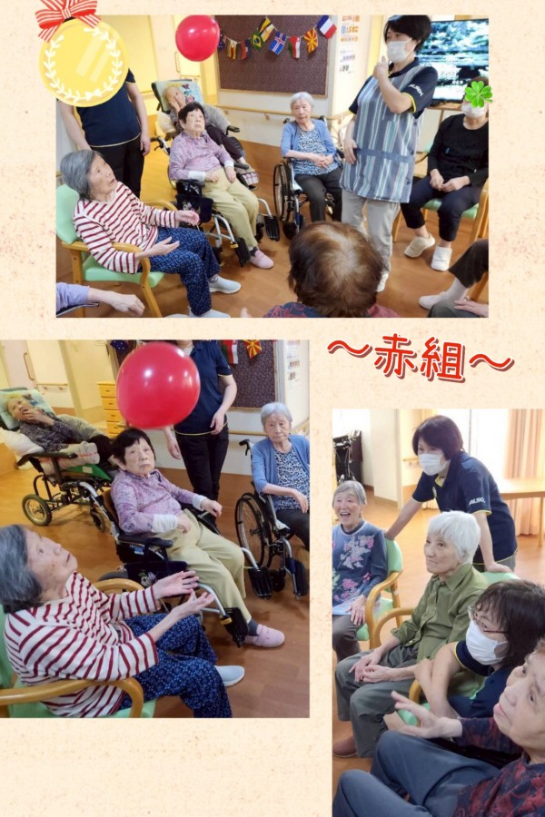 赤組・白組とも風船を落とさぬよう力を合わせ声掛けをしながらのラリー( *´艸`)
